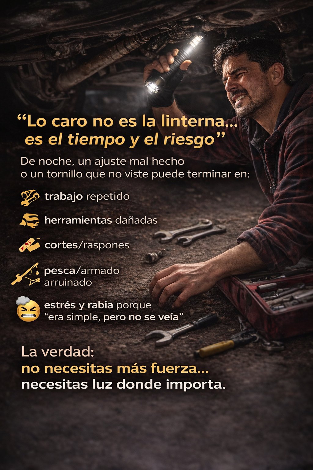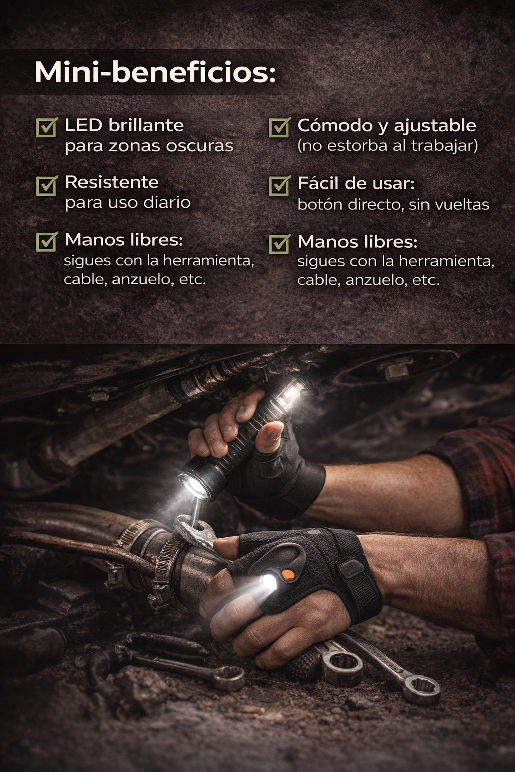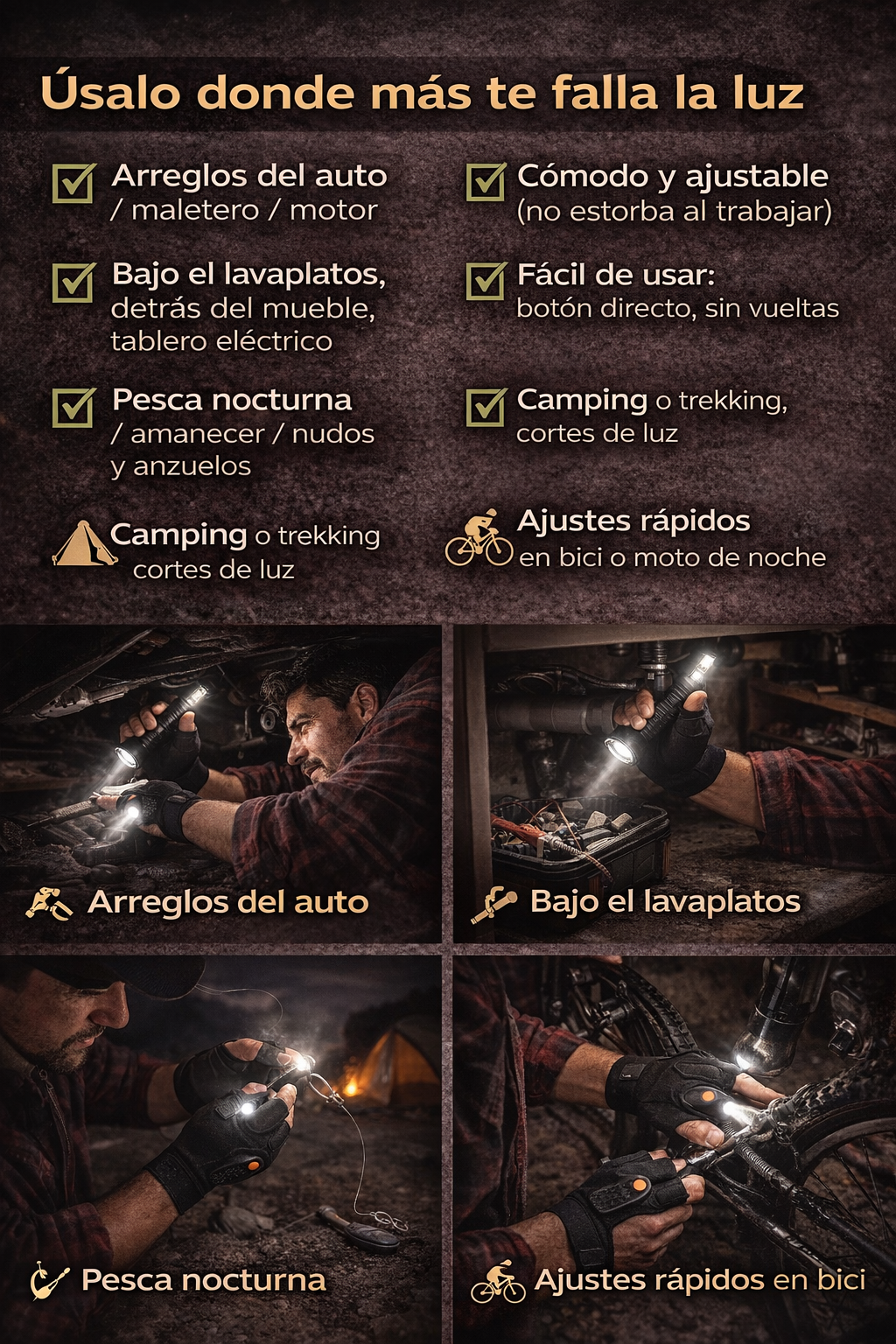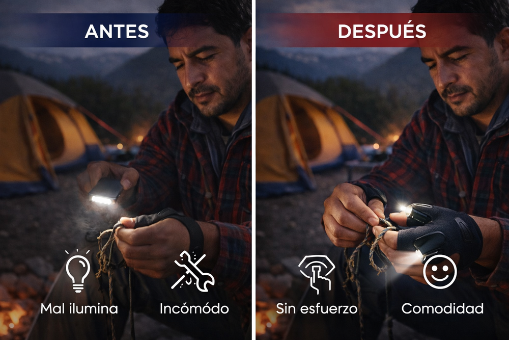 La luz va directo a lo que apuntas, por eso se siente mucho más útil que una linterna mal puesta.